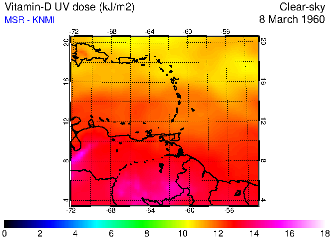 Clear-sky UV index:   erythemal