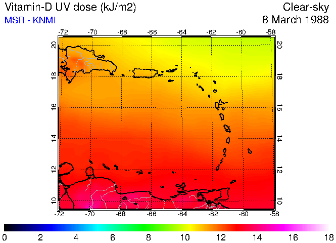 Clear-sky UV index:   erythemal