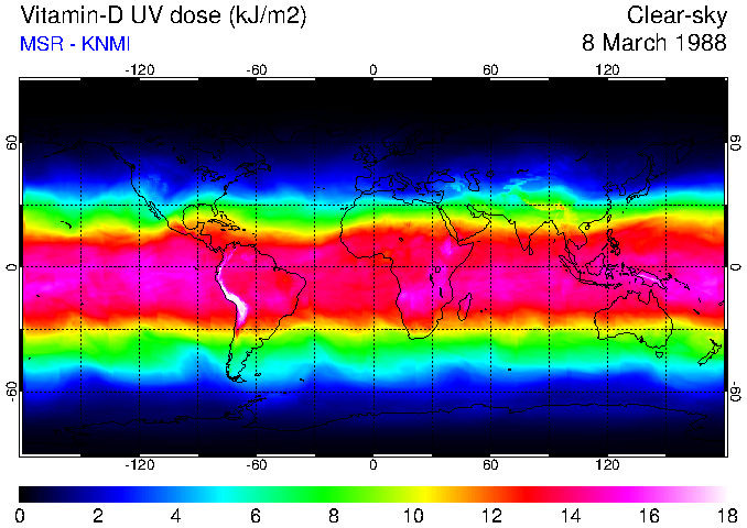 Daily UV dose:   erythemal  |  vitamin-D  |  DNA-damage