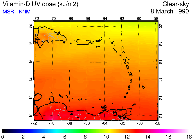 Clear-sky UV index:   erythemal