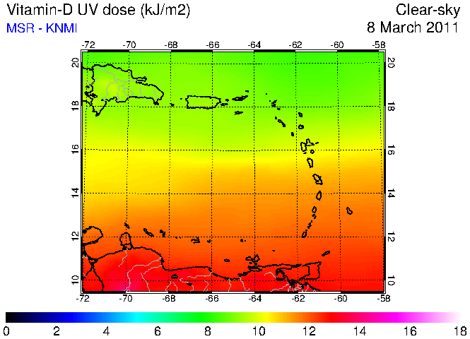Clear-sky UV index:   erythemal