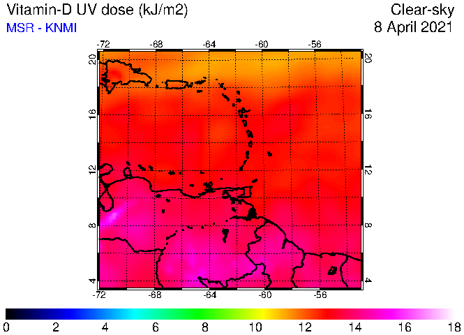 Clear-sky UV index:   erythemal