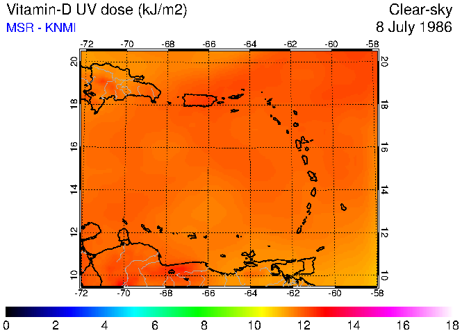 Clear-sky UV index:   erythemal