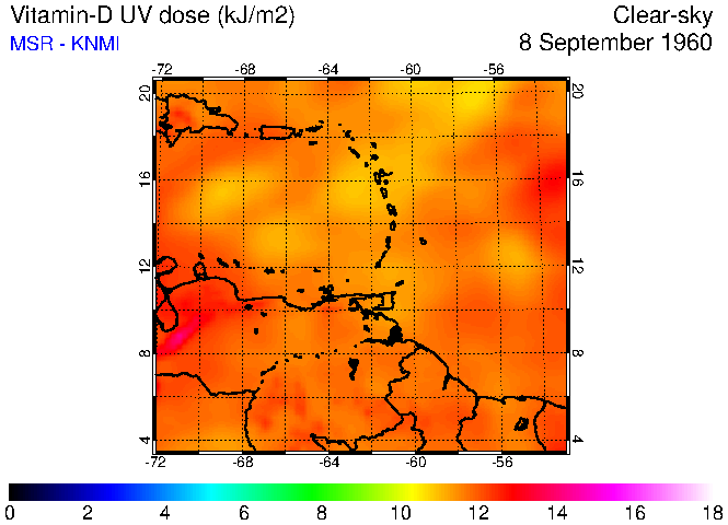 Clear-sky UV index:   erythemal
