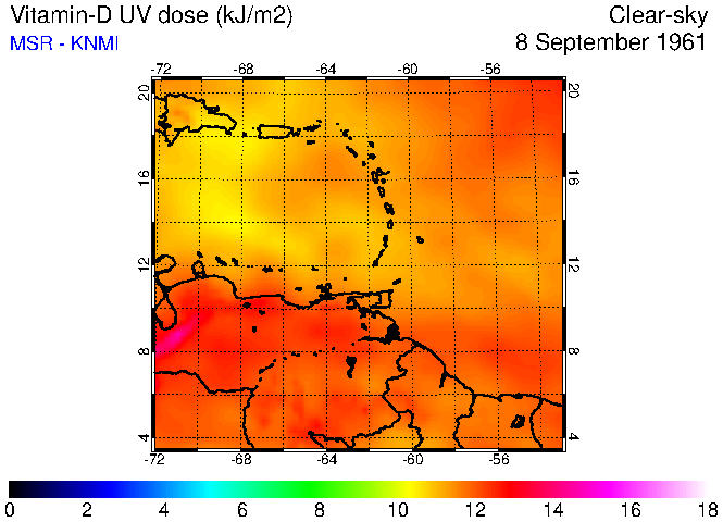 Clear-sky UV index:   erythemal