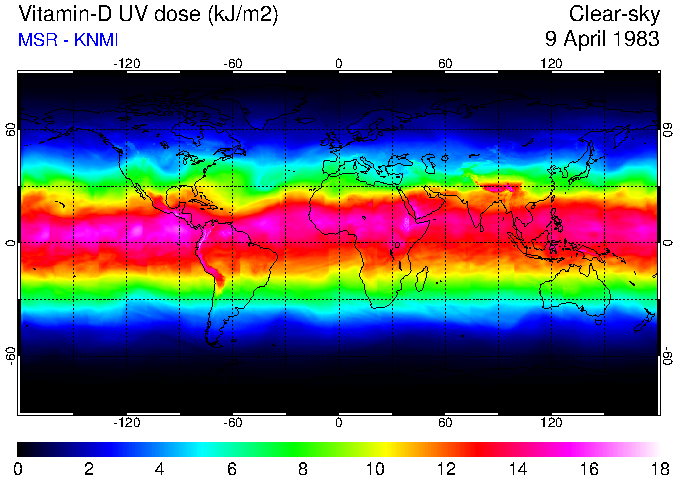 Daily UV dose:   erythemal  |  vitamin-D  |  DNA-damage