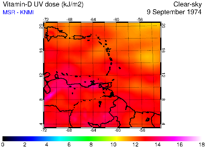 Clear-sky UV index:   erythemal