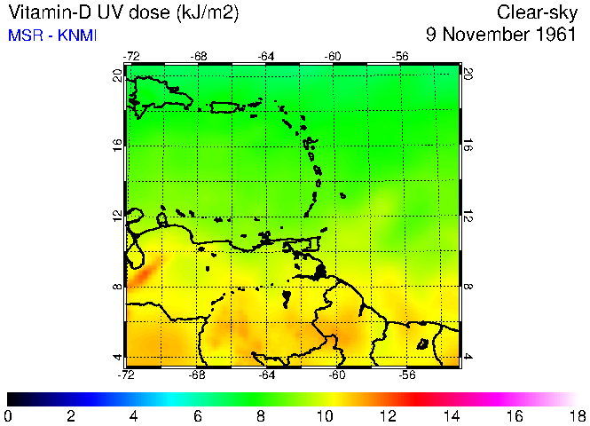Clear-sky UV index:   erythemal