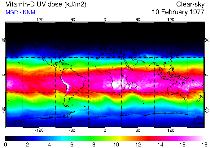 Daily UV dose:   erythemal  |  vitamin-D  |  DNA-damage