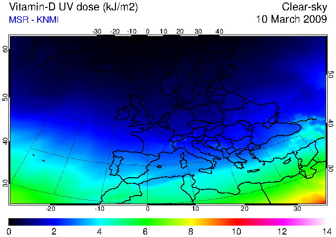 Vitamin-D UV dose of 10 March 2009