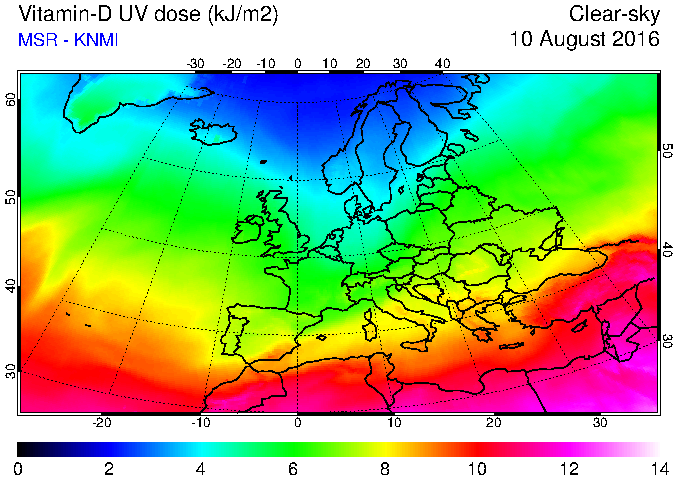 Vitamin-D UV dose of 10 August 2016