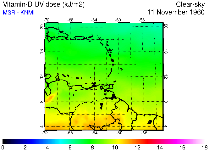 Clear-sky UV index:   erythemal