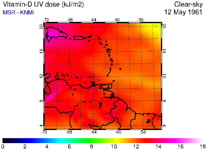 Clear-sky UV index:   erythemal
