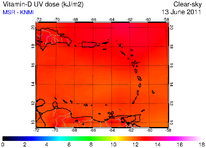 Clear-sky UV index:   erythemal