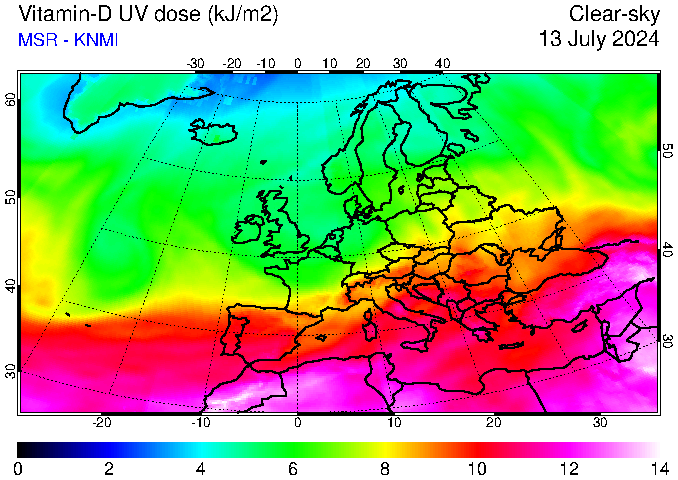 Vitamin-D UV dose of 13 July 2024