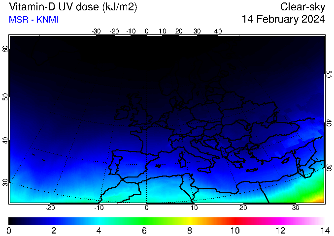 Vitamin-D UV dose of 14 February 2024