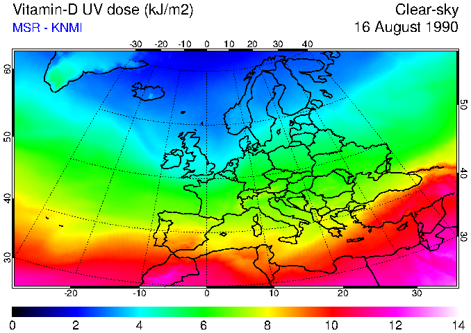 Vitamin-D UV dose of 16 August 1990