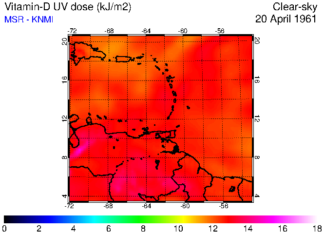 Clear-sky UV index:   erythemal