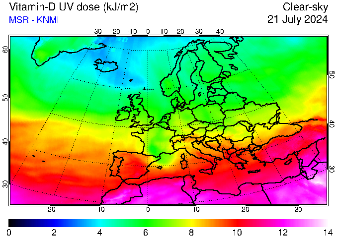 Vitamin-D UV dose of 21 July 2024