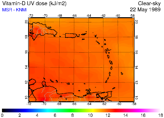 Clear-sky UV index:   erythemal