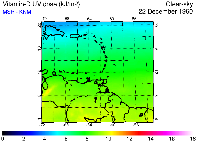 Clear-sky UV index:   erythemal