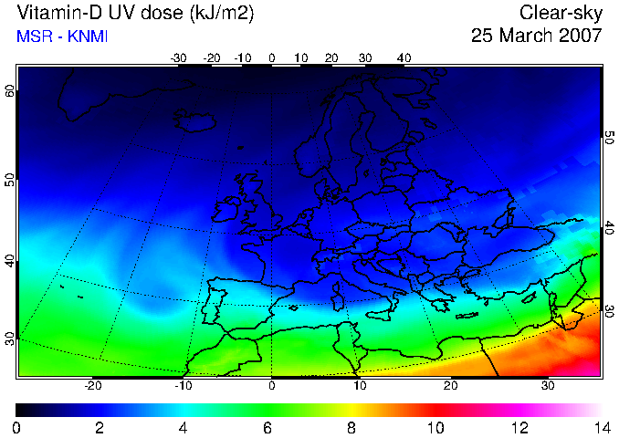 Vitamin-D UV dose of 25 March 2007