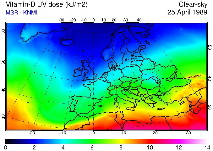 Vitamin-D UV dose of 25 April 1989