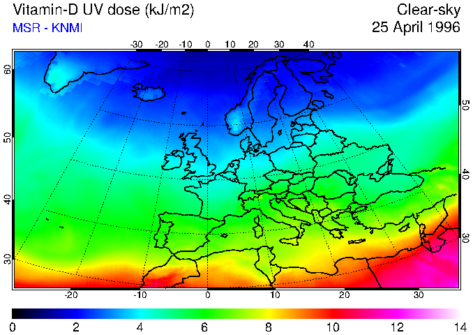Vitamin-D UV dose of 25 April 1996