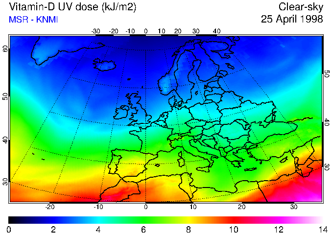 Vitamin-D UV dose of 25 April 1998