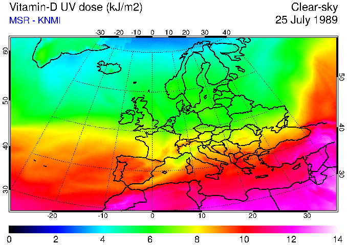 Vitamin-D UV dose of 25 July 1989