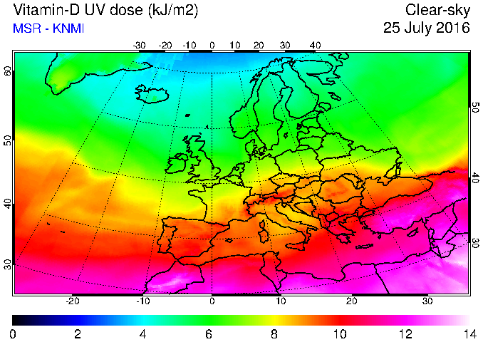 Vitamin-D UV dose of 25 July 2016