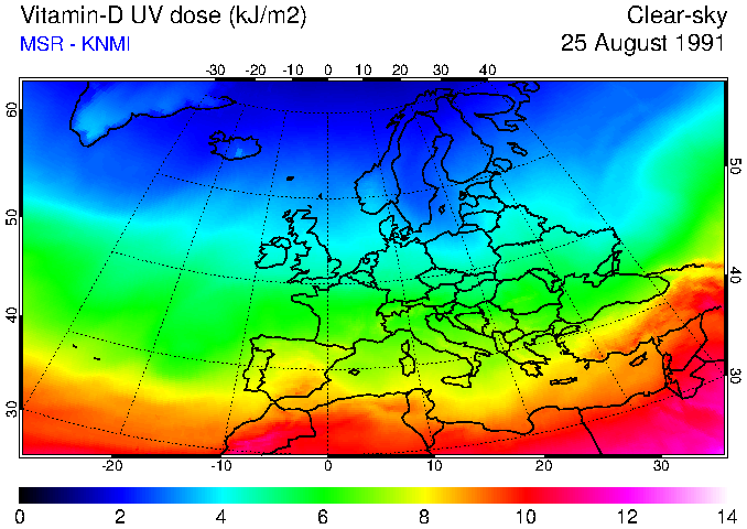 Vitamin-D UV dose of 25 August 1991