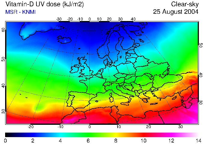 Vitamin-D UV dose of 25 August 2004