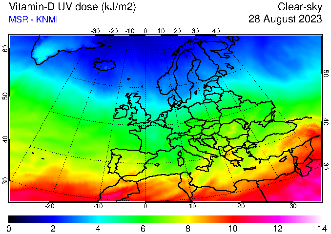 Vitamin-D UV dose of 28 August 2023
