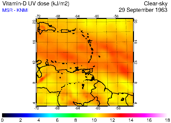 Clear-sky UV index:   erythemal