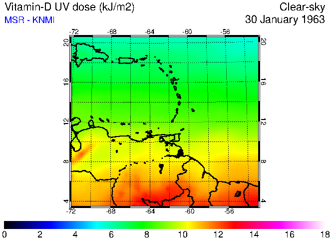 Clear-sky UV index:   erythemal