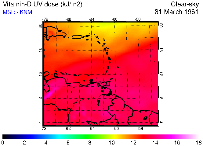 Clear-sky UV index:   erythemal