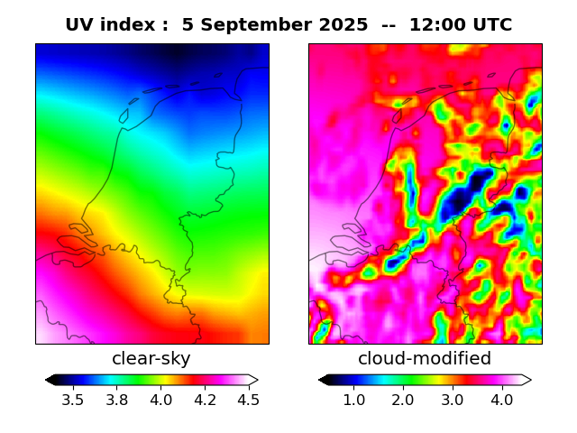 UV index for De Bilt UV index map at 1200 UTC