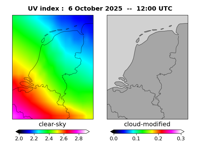 UV index for De Bilt UV index map at 1200 UTC