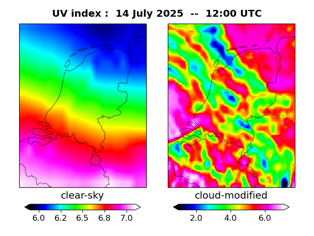 UV index for De Bilt UV index map at 1200 UTC