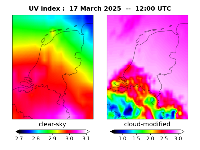UV index for De Bilt UV index map at 1200 UTC
