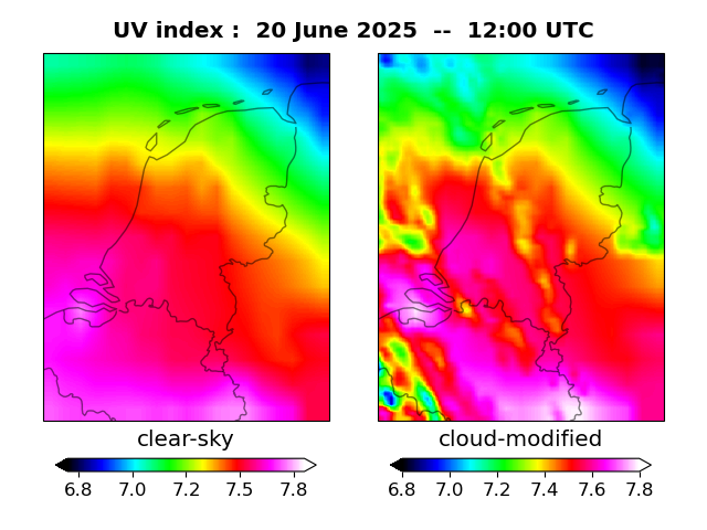 UV index for De Bilt UV index map at 1200 UTC
