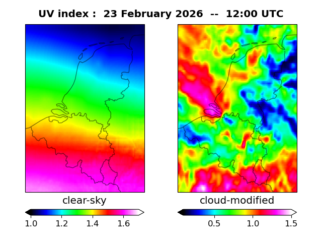 UV index for De Bilt of 23 February 2026 UV index map at 1200 UTC