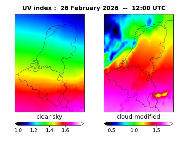 UV index for De Bilt of 26 February 2026 UV index map at 1200 UTC