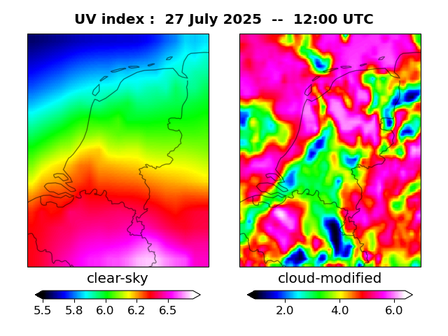 UV index for De Bilt UV index map at 1200 UTC