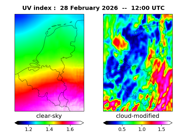 UV index for De Bilt of 28 February 2026 UV index map at 1200 UTC