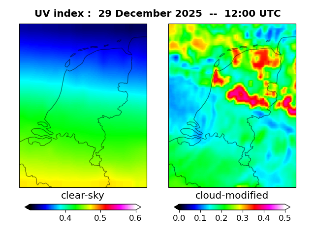 UV index for Vlissingen UV index for Vaals of 29 December 2025