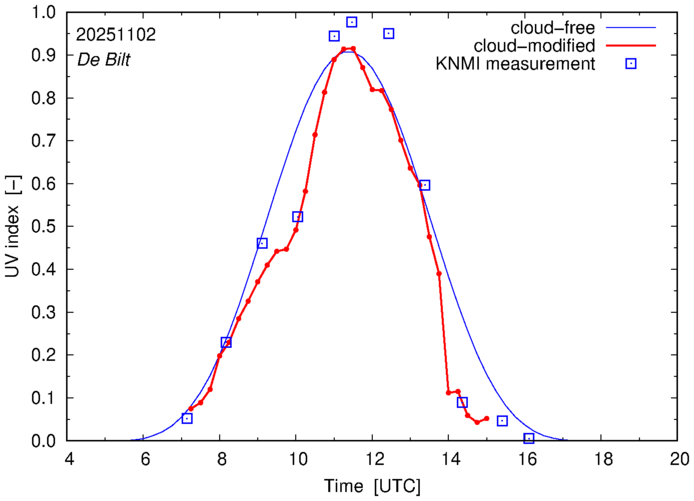 Daily cloud-modified erythemal UV index for The Netherlands |
