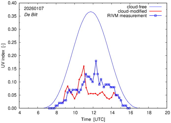 Daily cloud-modified erythemal UV index for The Netherlands |