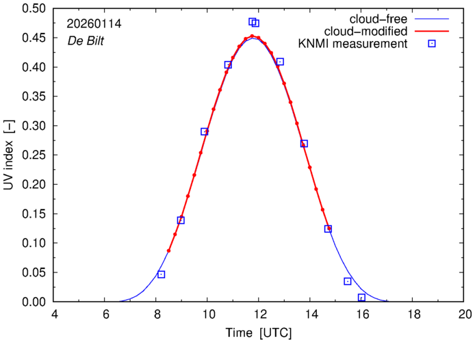 Daily cloud-modified erythemal UV index for The Netherlands |